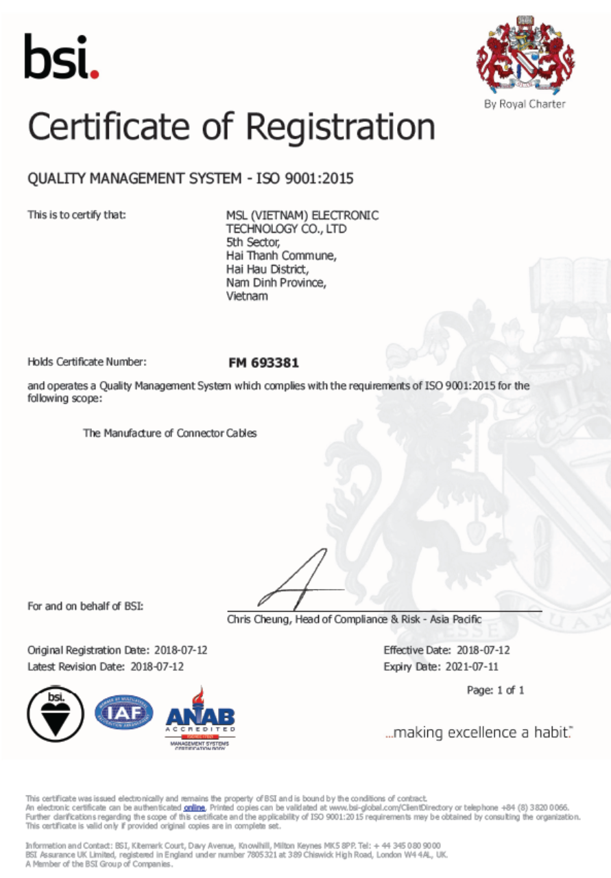本公司的中國和越南生產基地除了擁有ISO 9001 & 14001的體系認證外,也獲得了多項各國的安規認證,可滿足客戶的需求及保障。