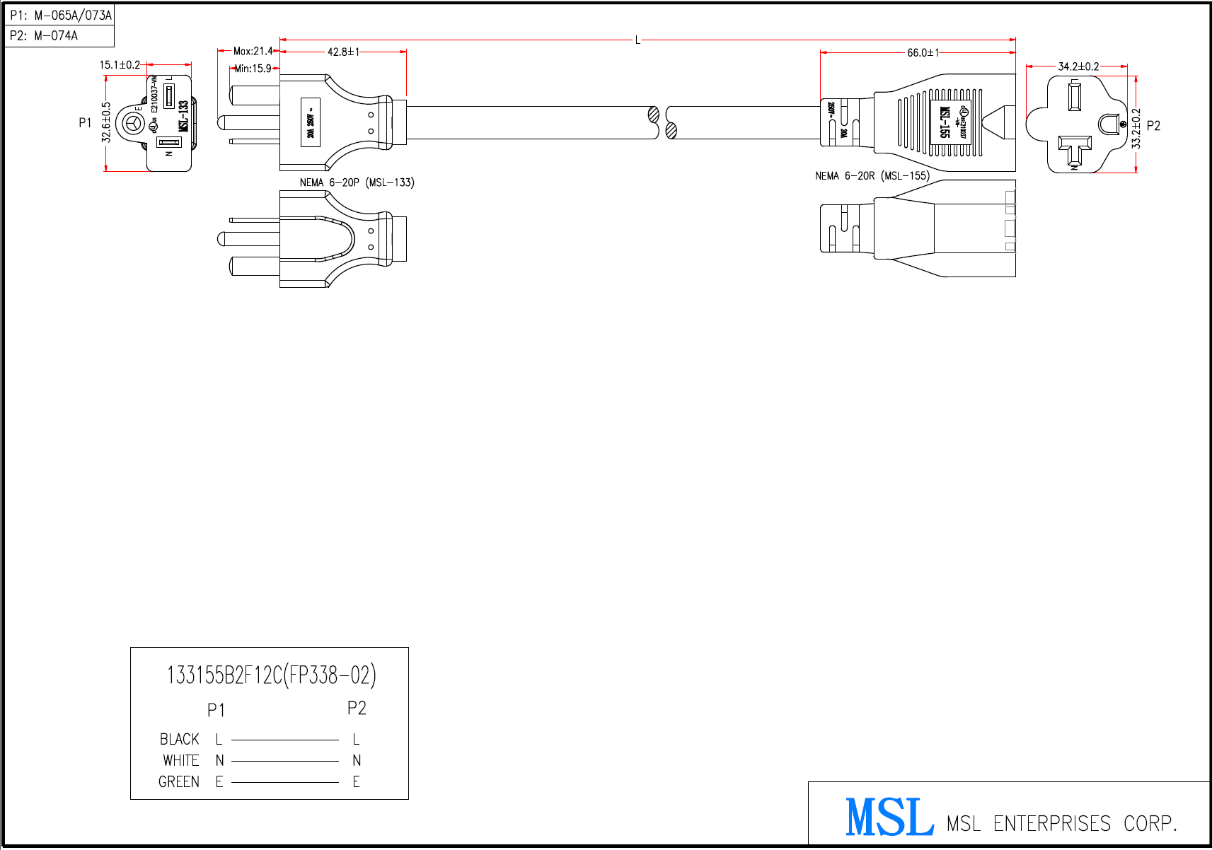 線路號 FP338-02 長度 1FT-25FT 插頭編號 133-155 插頭AMP / Vottage 15A-250V 線材規格 UL SJT 14AWG x 3C, OD 9.3mm EPSVT011403C-148 顏色 黑色 參考安規 UL、CUL 附註 建議長度: 1FT、 25FT