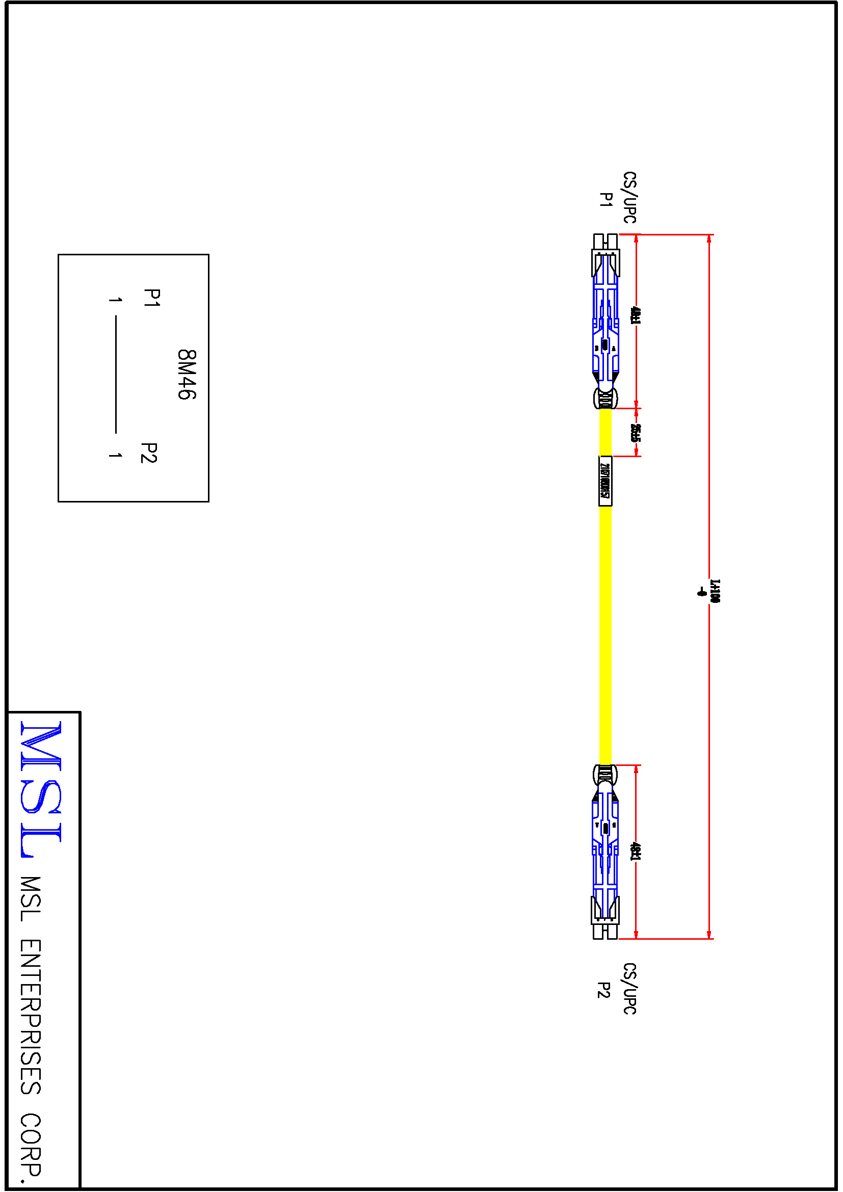 SM CS/UPC 2.0mm 拉杆L=48mm含插芯 單模 單管雙芯 G657A2 2.0mm黃色PVC