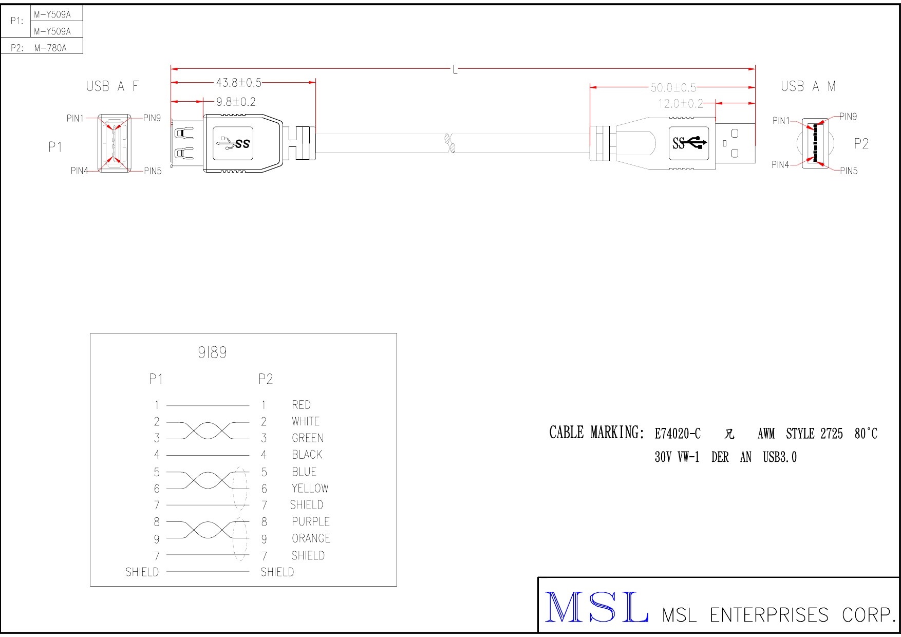 線路號 9I89 長度 1.5FT - 15FT 插頭編號 A1HC19-0432、A1HA48-0846 線材規格 USB3.0 UL2725 #28+#28+#24 1P+2P+2C OD5.8 (EUAB2801P2802P2402C-333)UL1061 #28 1C OD0.9 (EH002801C-024) 顏色 黑色、藍色 參考安規 UL 附註 建議長度: 6FT、10FT