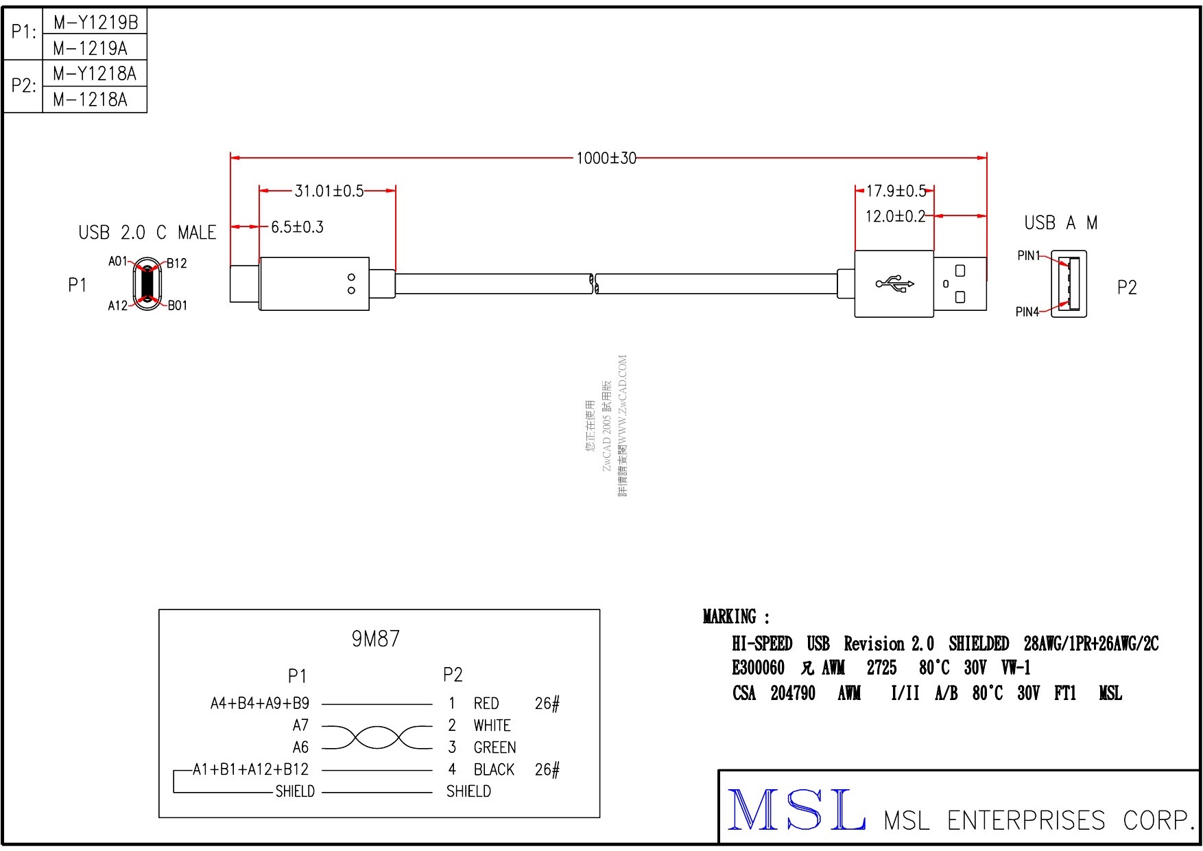 線路號 9M87 長度 3.28FT - 9.84FT 插頭編號 A1HH40-0108、A1HA87-0603 線材規格 USB2.0 #28+#22 1P+2C OD4.50 (EUAB2801P2202C-116) 顏色 黑色 參考安規 UL