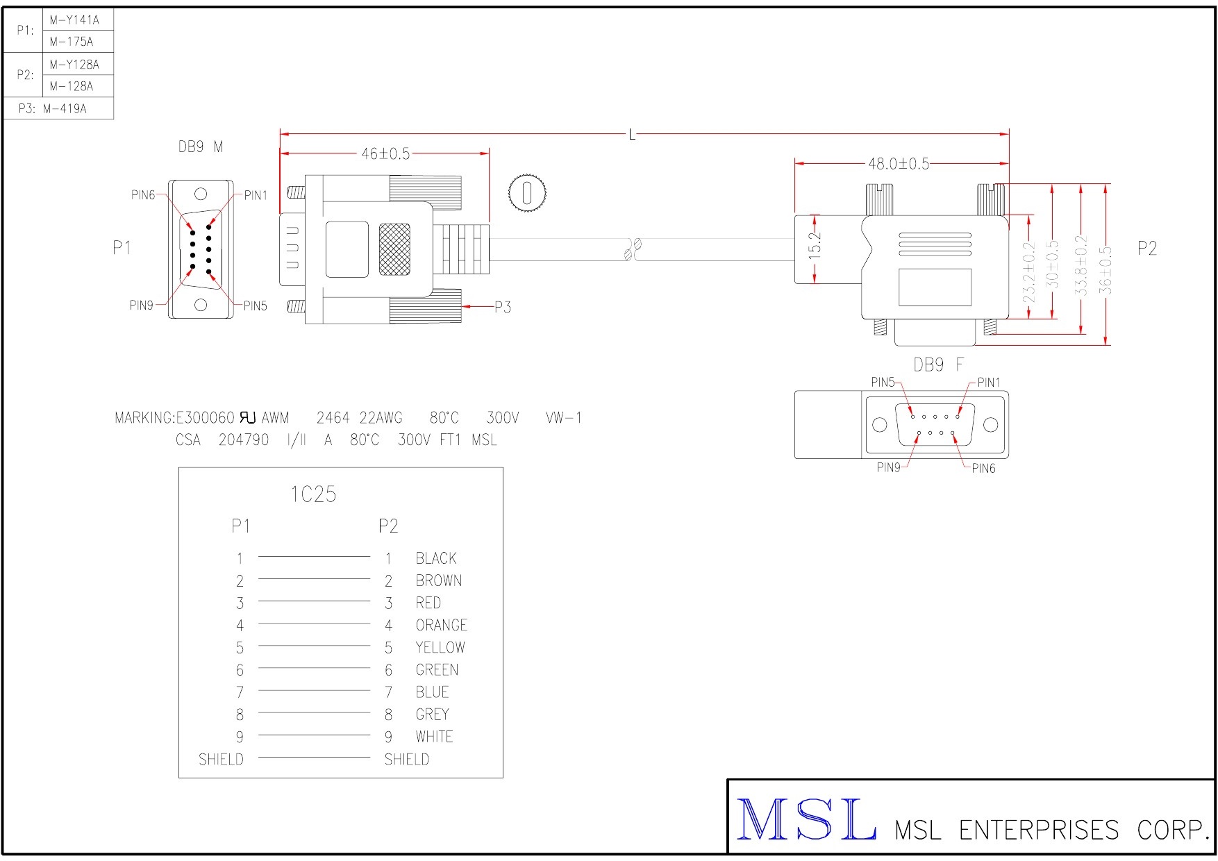 線路號 1C25 長度 3.3FT - 16.4FT 插頭編號 A1AA12-0108U09、A1AA01-0108U09 線材規格 UL2464 #22 9C+AEB OD7.0 ( EMAB2209C-976) 顏色 黑色 參考安規 UL 附註 建議長度: 9.8FT、16.4FT