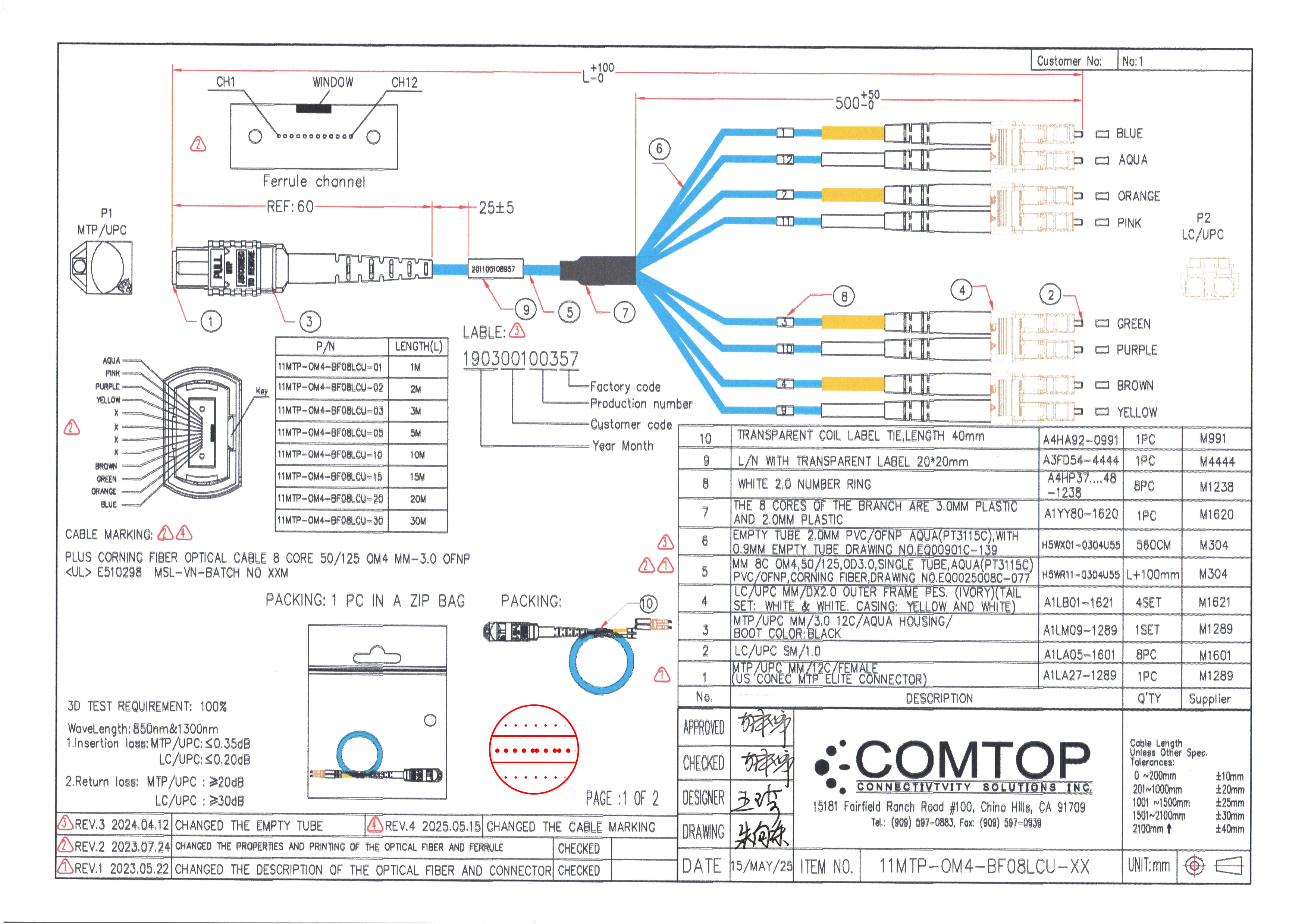 線路號 8M38 長度 0.5FT - 15FT 插頭編號 A1LA27-1289、A1LA05-1601 線材規格 EMPTY TUBE 2.0MM PVC/OFNP AQUA(PT3115C),WITH 0.9MM EMPTY TUBE DRAWING NO,EQ00901C-139 顏色 水蓝色 參考安規 UL