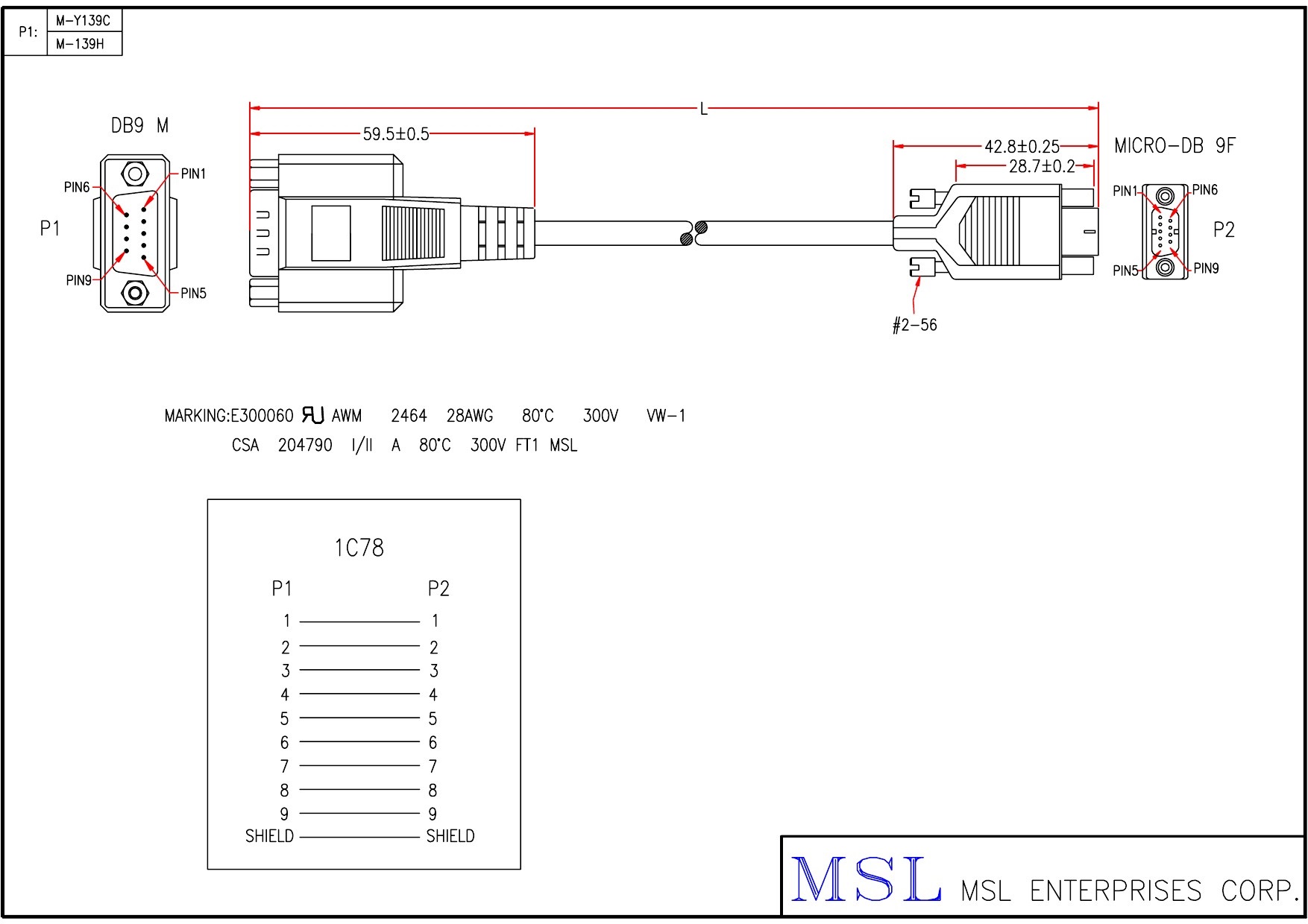 線路號 1C78 長度 6.5FT 插頭編號 A1AA12-0108U09、A1RY17-0101、A1AB10-0101 插頭AMP / Vottage DB9M - MICRO DB9F 線材規格 UL2464 #28 9C+AE OD5.0 ( EMAL2809C-052) 顏色 黑色 參考安規 UL 附註 建議長度: 6.5FT