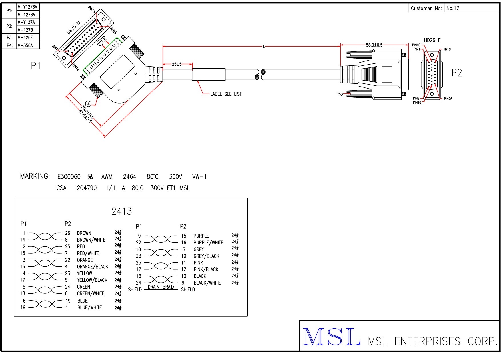 線路號 2413 長度 11.5FT - 18.1FT 插頭編號 A1AE14-0108、A1CC01-0108 線材規格 UL2464 #24+#26 10P+6P OD10.2 (EMAB2410P2606P-1562) 顏色 黑色 參考安規 UL 附註 建議長度: 11.5FT、18.1FT