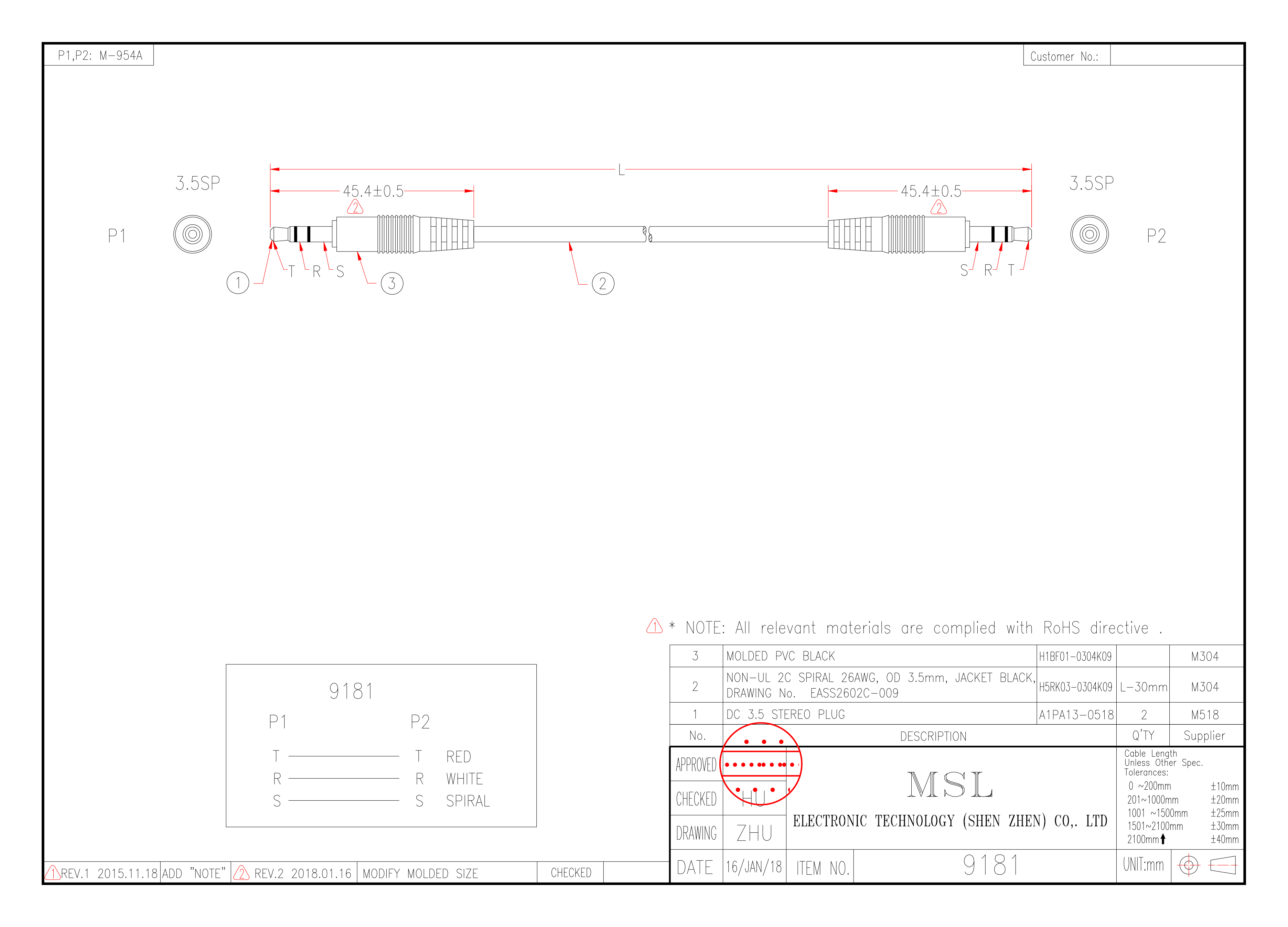 線路號 9181 長度 0.39FT - 12FT 插頭編號 A1PA13-0518 線材規格 AV隔離線 #26 2CS OD3.5 (EASS2602C-009) 顏色 貝吉色、黑色 附註 建議長度: 3.28FT、12FT