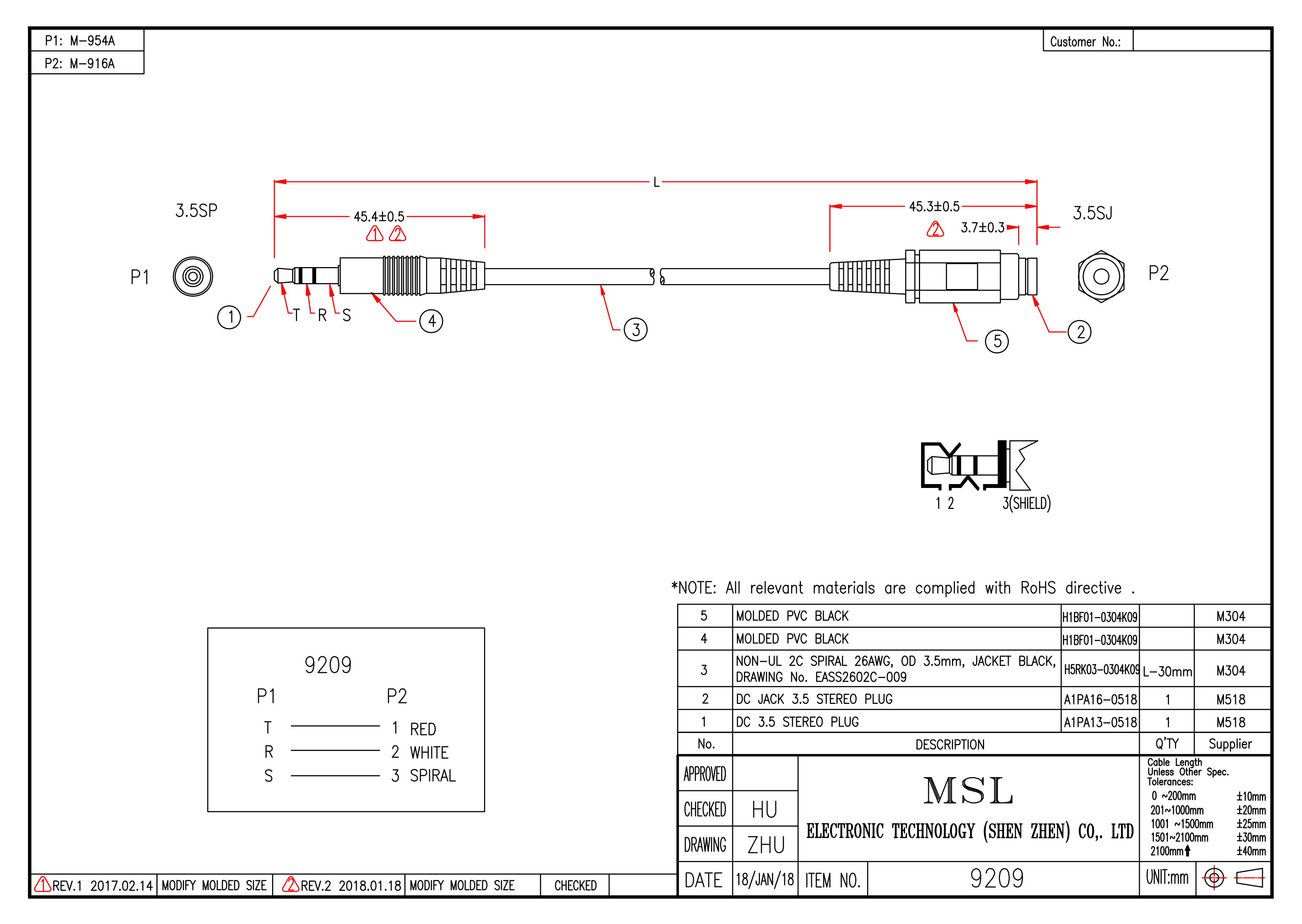 線路號 9209 長度 1FT - 75FT 插頭編號 A1PA13-0518、A1PA16-0518 線材規格 AV隔離線 #28 2CS OD3.5 (EASS2802C-031) 顏色 白色、黑色 附註 建議長度: 6FT、12FT