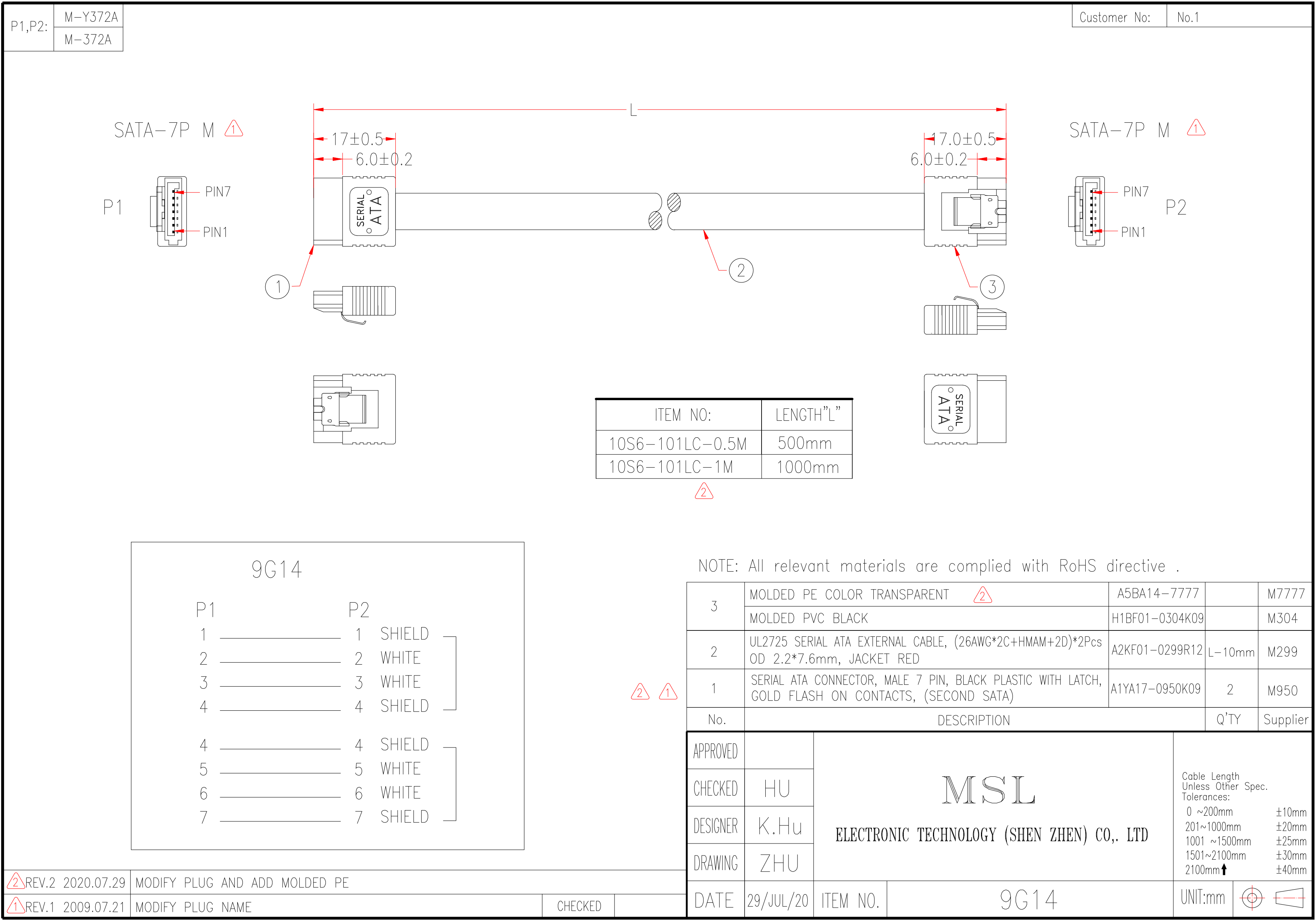 線路號 9G14 長度 0.38FR - 3.28FT 插頭編號 A1YA17-0656K09 線材規格 UL2725 26# ATA150 OD2.2*7.6 顏色 紅色 參考安規 UL 附註 建議長度: 1.64FT、3.28FT