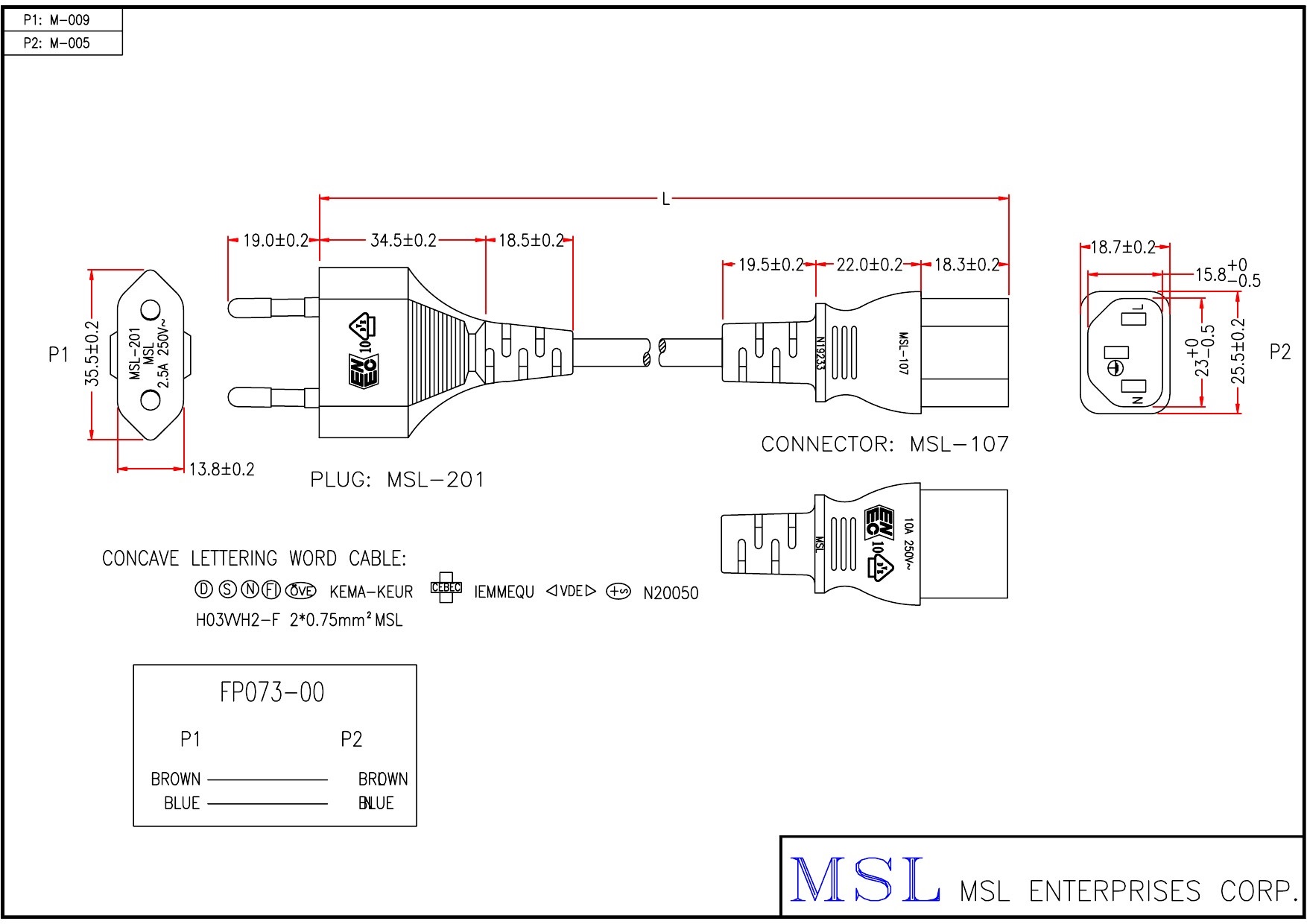 插頭AMP / Vottage 2.5A - 250V 10A - 250V