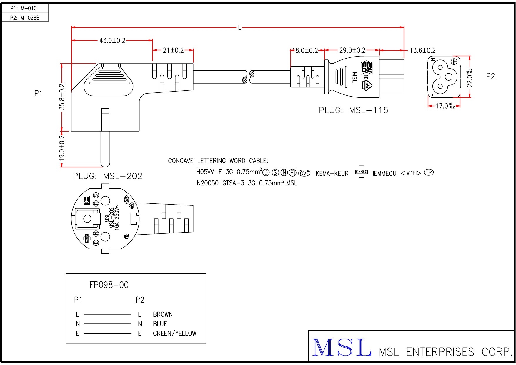 插頭AMP / Vottage 16A - 250V 2.5A - 250V