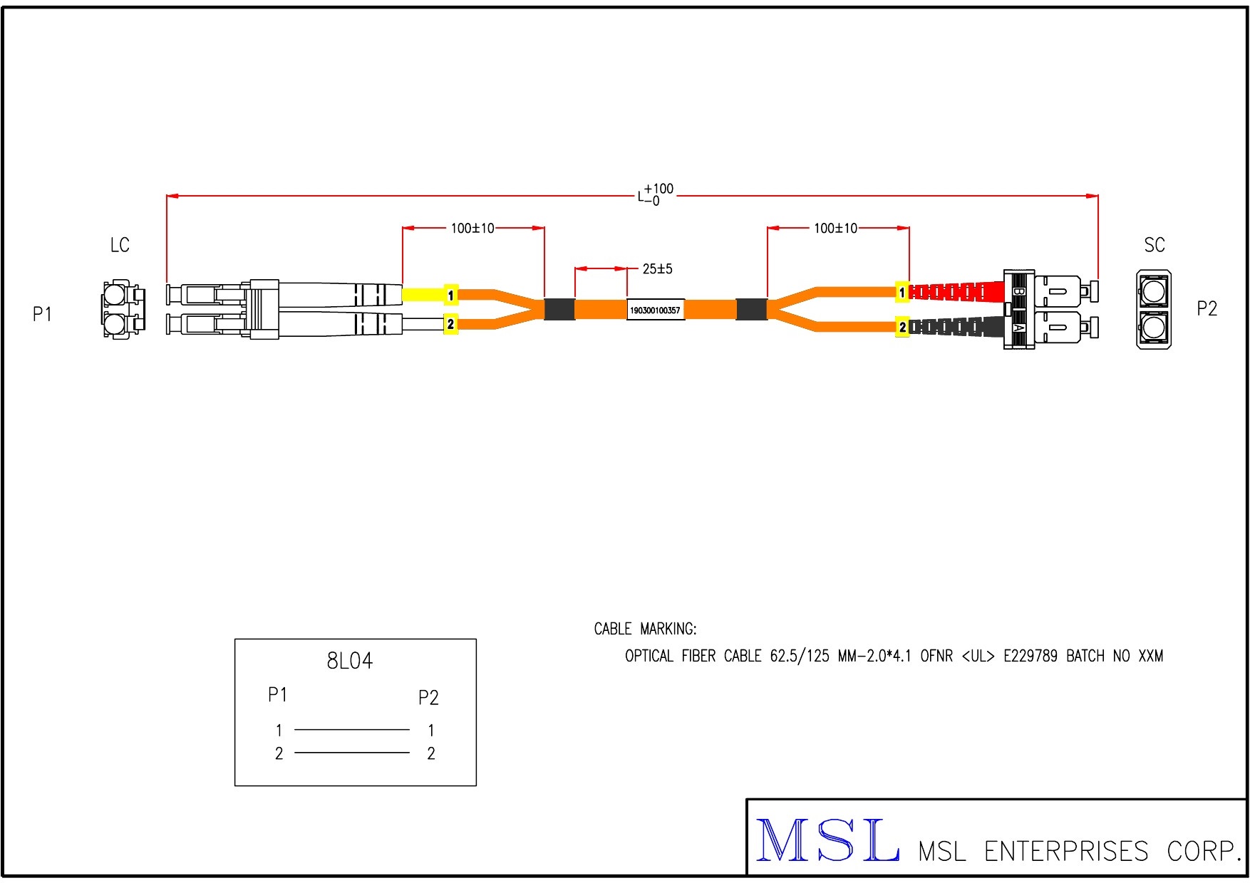 線路號 8L04 長度 1-30M 插頭編號 A1LA06-1601,A1LB01-1620,A1LA03-1601,A1LB11-1620 線材規格 MM DX OM1 62.5/125 OD2.0*4.1mm 橘色 E229789 外被阻燃:OFNR,光纖材質:康宁纤,紡綸紗 顏色 橘色 參考安規 UL