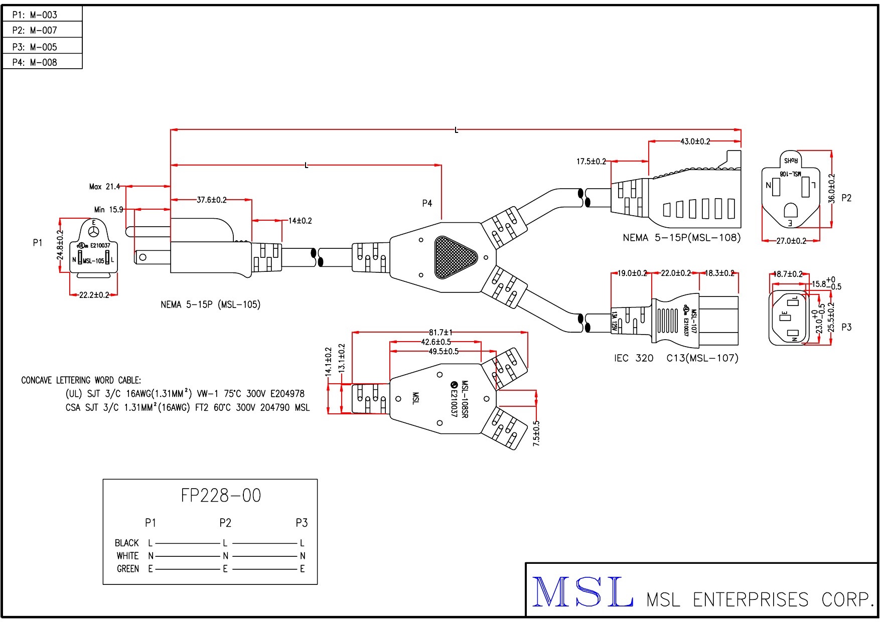 NEMA5-15P - NEMA5-15R - IEC60320 C13