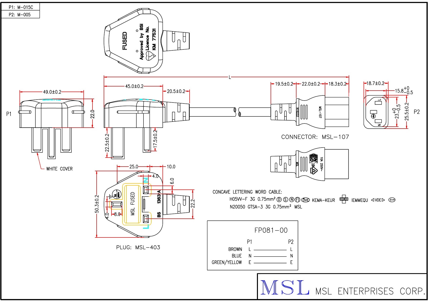 線材規格 H05VV-F 3G 0.75mm2 GTSA-3 OD6.8 (EPH5V0107503C-042)