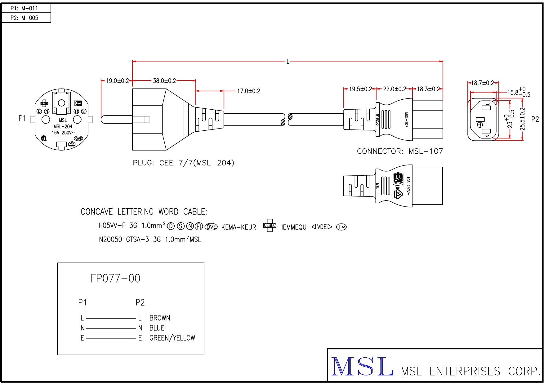 | 線材規格 | H05VV-F 3G 1.0mm2 GTSA-3 OD:7.1 (EPH5V011003C-052) |