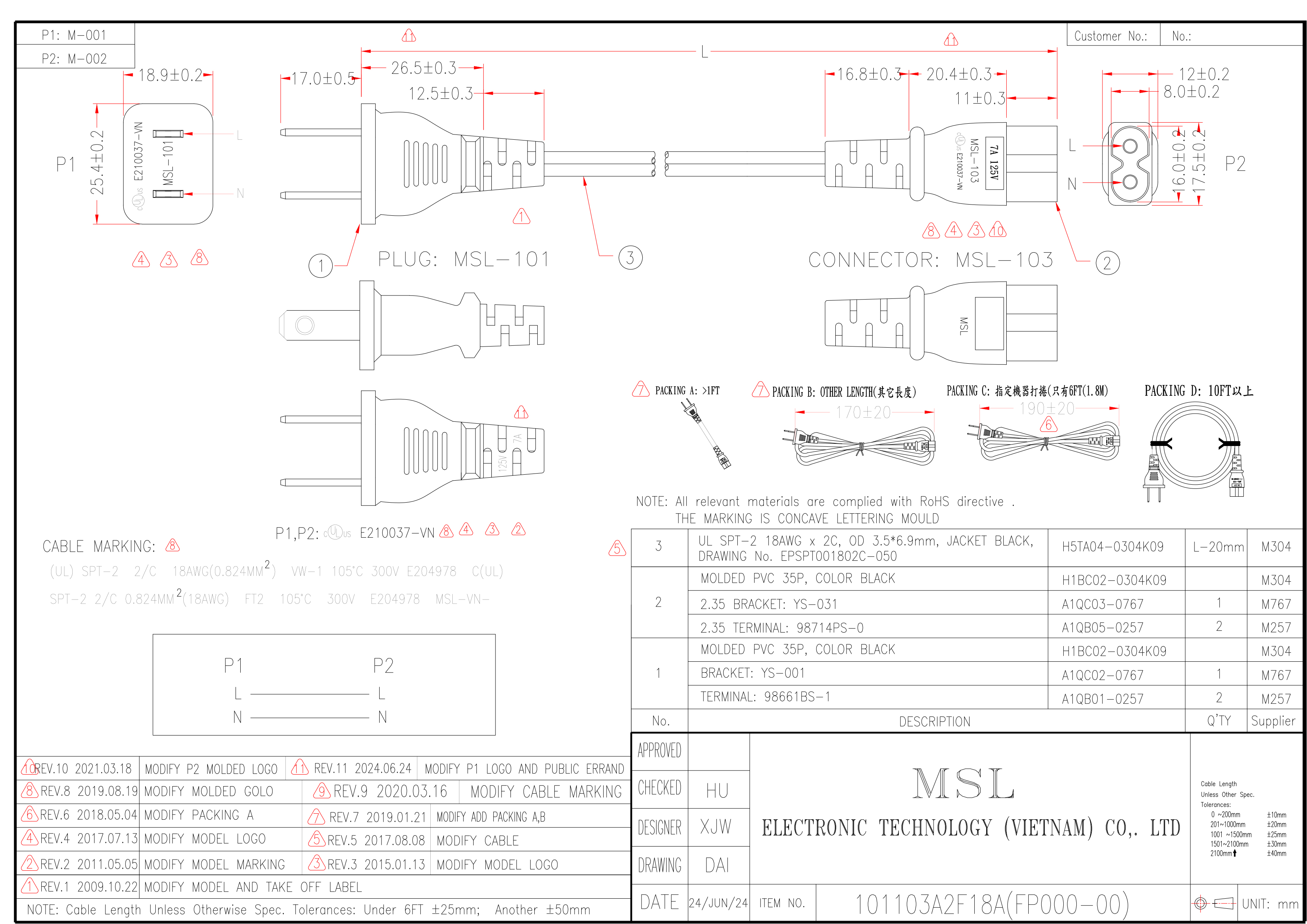 線材規格 ULSPT-2 #18 2C OD3.5*6.9(EPSPT001802C-050)