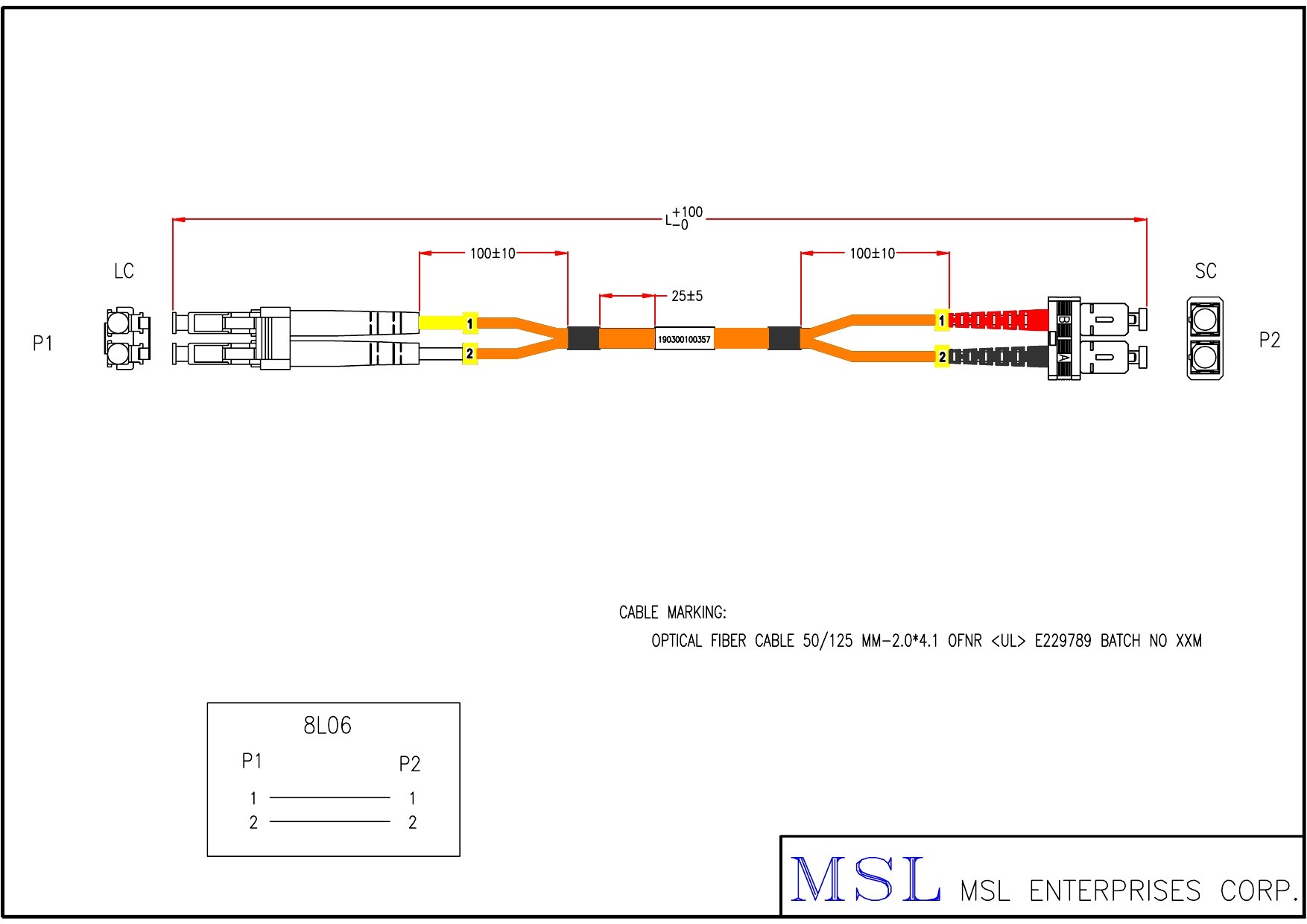 線路號 8L06 長度 1-30M 插頭編號 A1LA06-1601 A1LB01-1620 A1LA03-1601 A1LB11-1620 線材規格 MM DX OM2 50/125 OD2.0*4.1mm 橘色 E229789 外被阻燃:OFNR ,光纖材質:康宁纤 , 紡綸紗 顏色 橘色 參考安規 UL