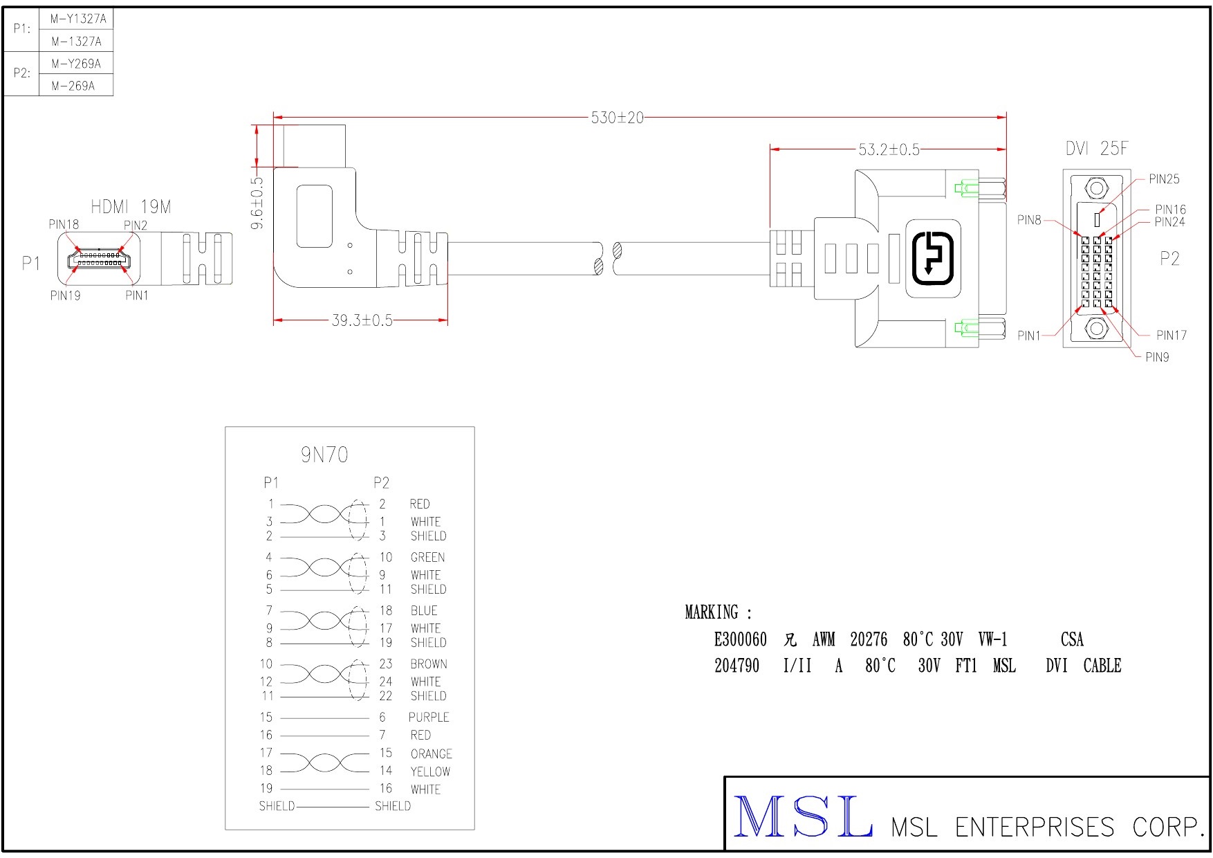 線路號 9N70 長度 1.71FT 插頭編號 A1KK56-0970、A1KD14-0636 線材規格 UL20276 #28 DVI-D(Single) 4P+1P+3C OD7.3 (EAAB2804P2801P2803C-286) 顏色 黑色 參考安規 UL 附註 建議長度: 1.71FT