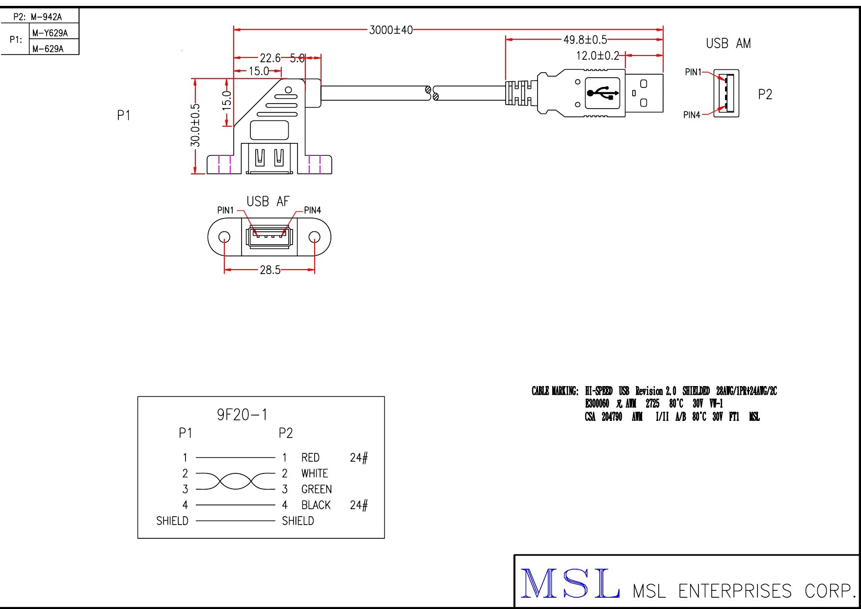 線路號 9F20-1 長度 9.8FT 插頭編號 A1HC07-0108、A1HA23-0108 線材規格 USB2.0 #28+#24 (1P+2C)+AEB OD4.5 (EUAB2801P2402C-341) 顏色 黑色 參考安規 UL 附註 建議長度: 9.8FT