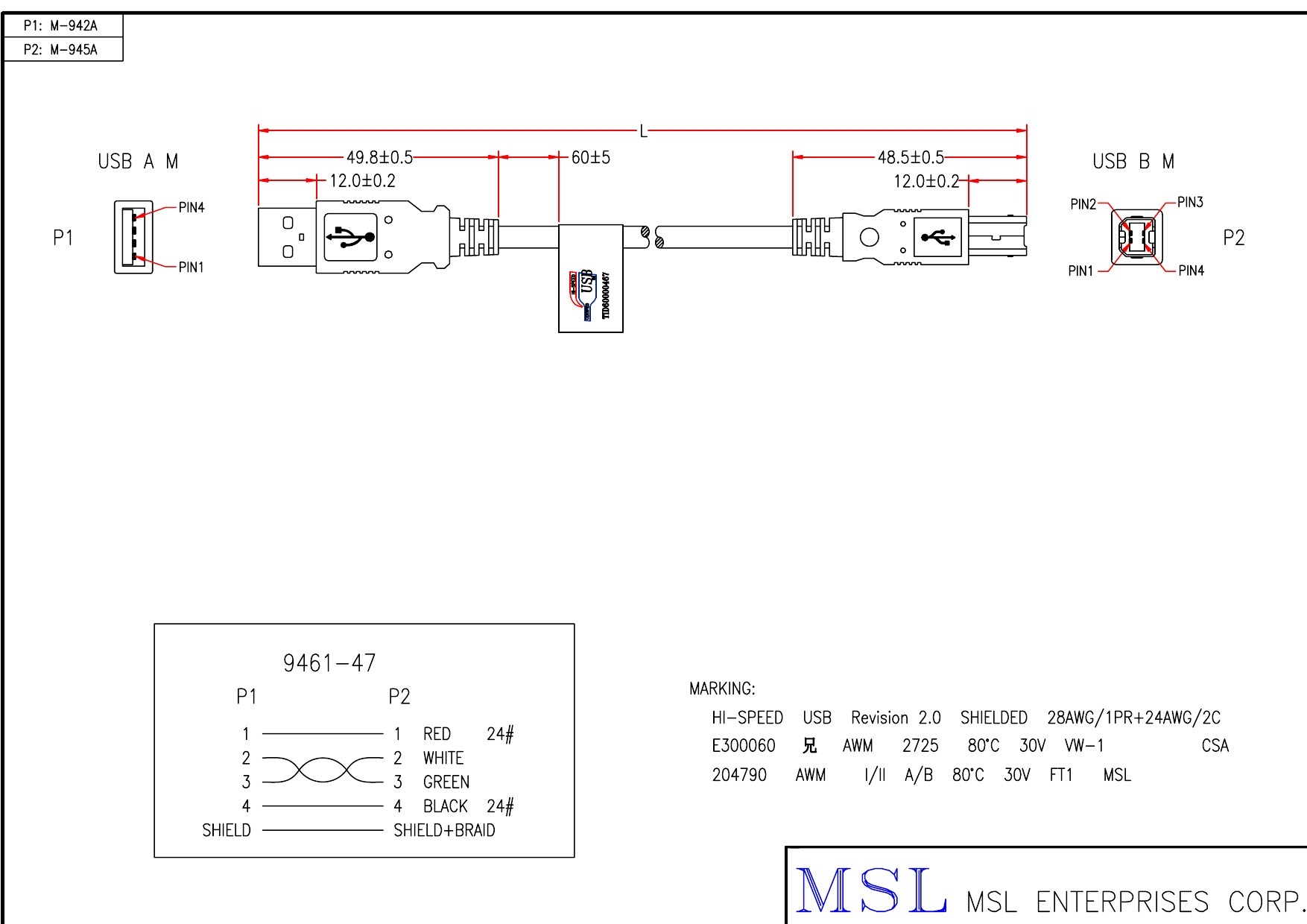 線路號 9461-47 長度 0.95FT - 15FT 插頭編號 A1HA22-0454、A1HB15-0454 線材規格 USB2.0 #28+#24 1P+2C OD4.5 (EUAB2801P2402C-139) 顏色 貝吉色、煙灰白色、黑色、透明色、白色、藍色 參考安規 UL 附註 建議長度: 6FT、 10FT