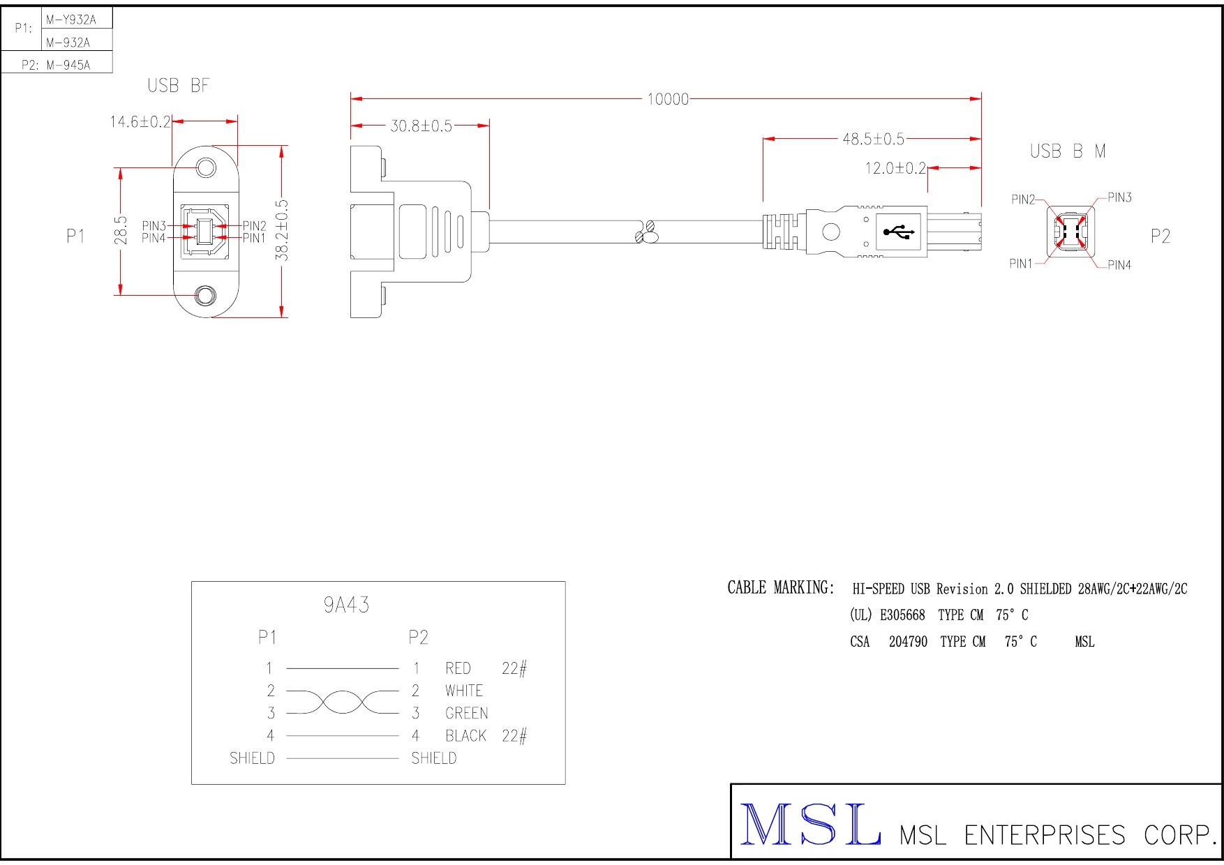 線路號 9A43 長度 0.75FT - 16.4FT 插頭編號 A1HD03-0108、A1HB16-0454 線材規格 USB2.0 #28+#24 1P+2C OD4.5 ( EUAB2801P2402C-139) 顏色 貝吉色、黑色 參考安規 UL 附註 建議長度: 9.84FT、16.4FT