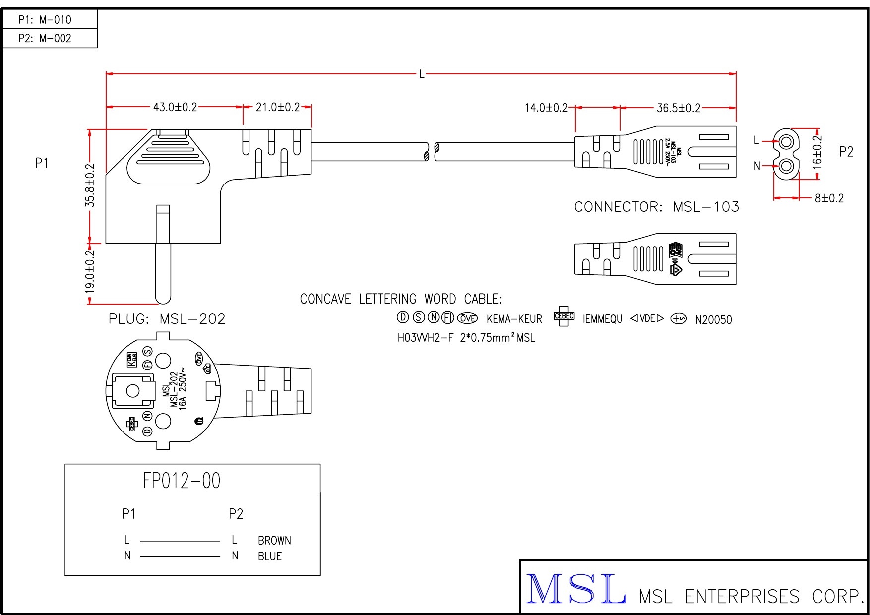 Wire specification H03VVH2-F 2C 0.75mm2 OD3.5*5.7 (EPH3V0107502C-001 )