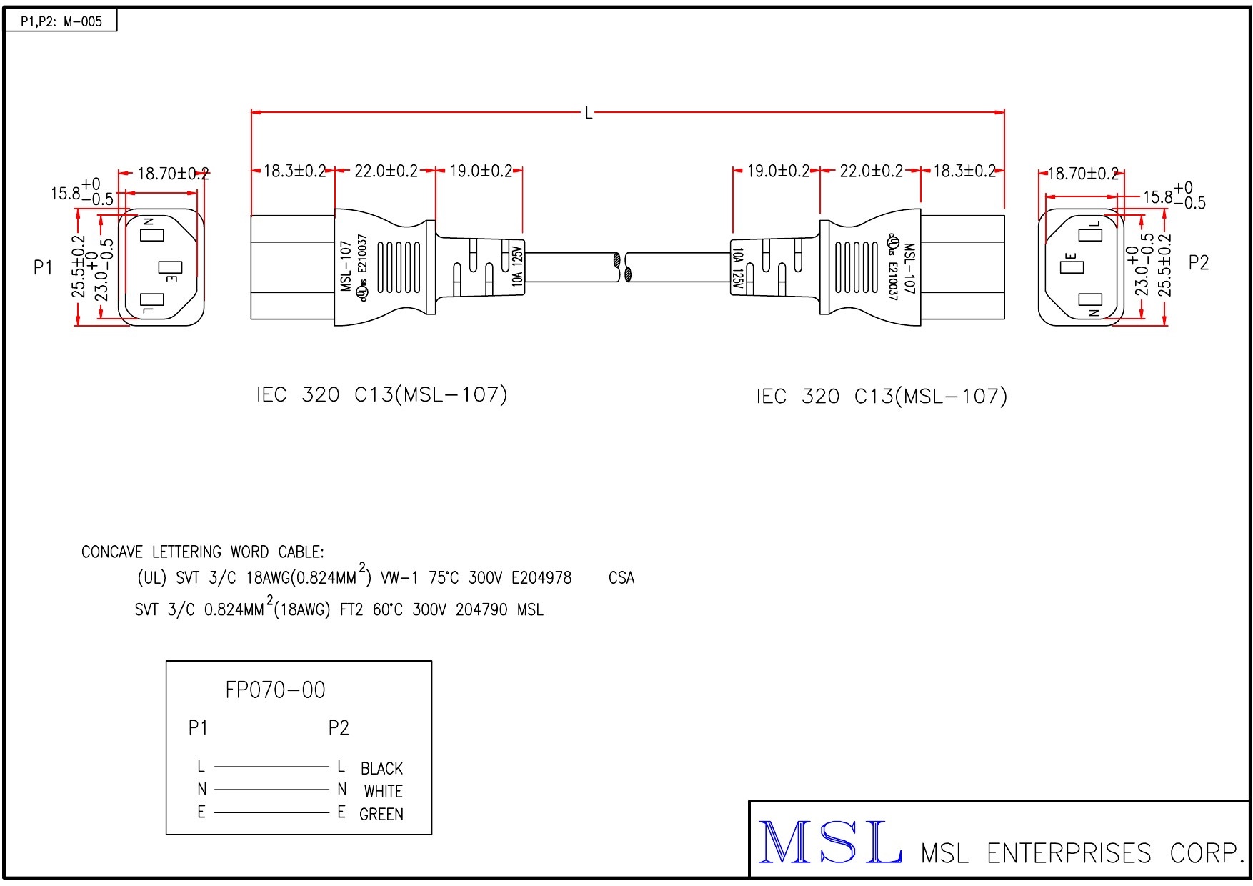 | Wire specification | UL SVT #18 3C OD6.3 (EPSVT011803C-008) |