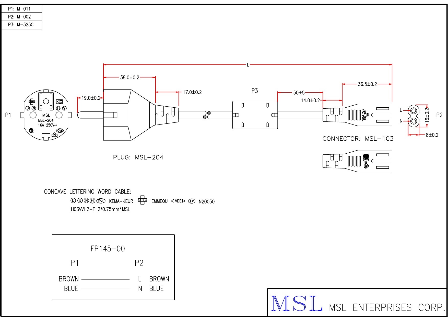 | Wire specification | H03VVH2-F 2C 0.75mm2 OD3.5*5.7 ( EPH3V0107502C-001) |