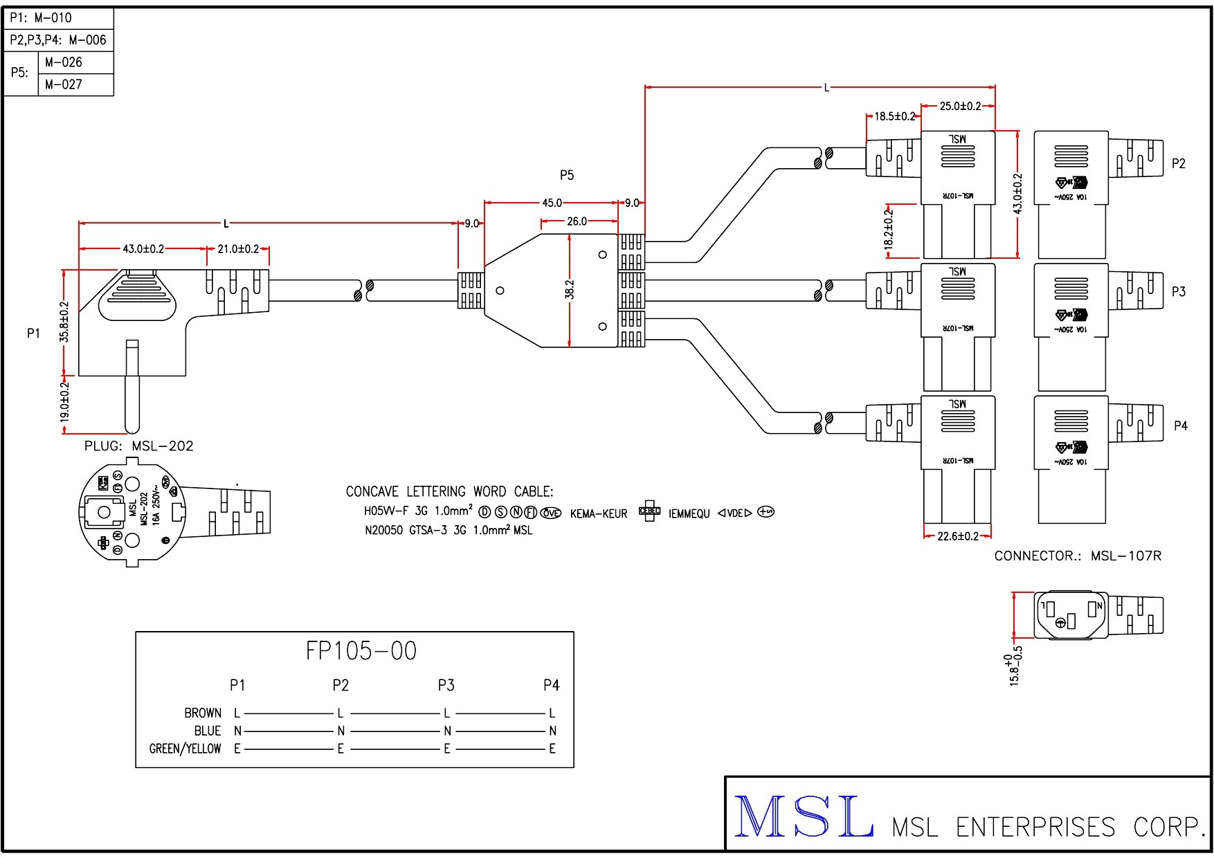 | Wire specification | H05VV-F 3G 1.0mm2 GTSA-3 OD:7.1 (EPH5V011003C-005) |