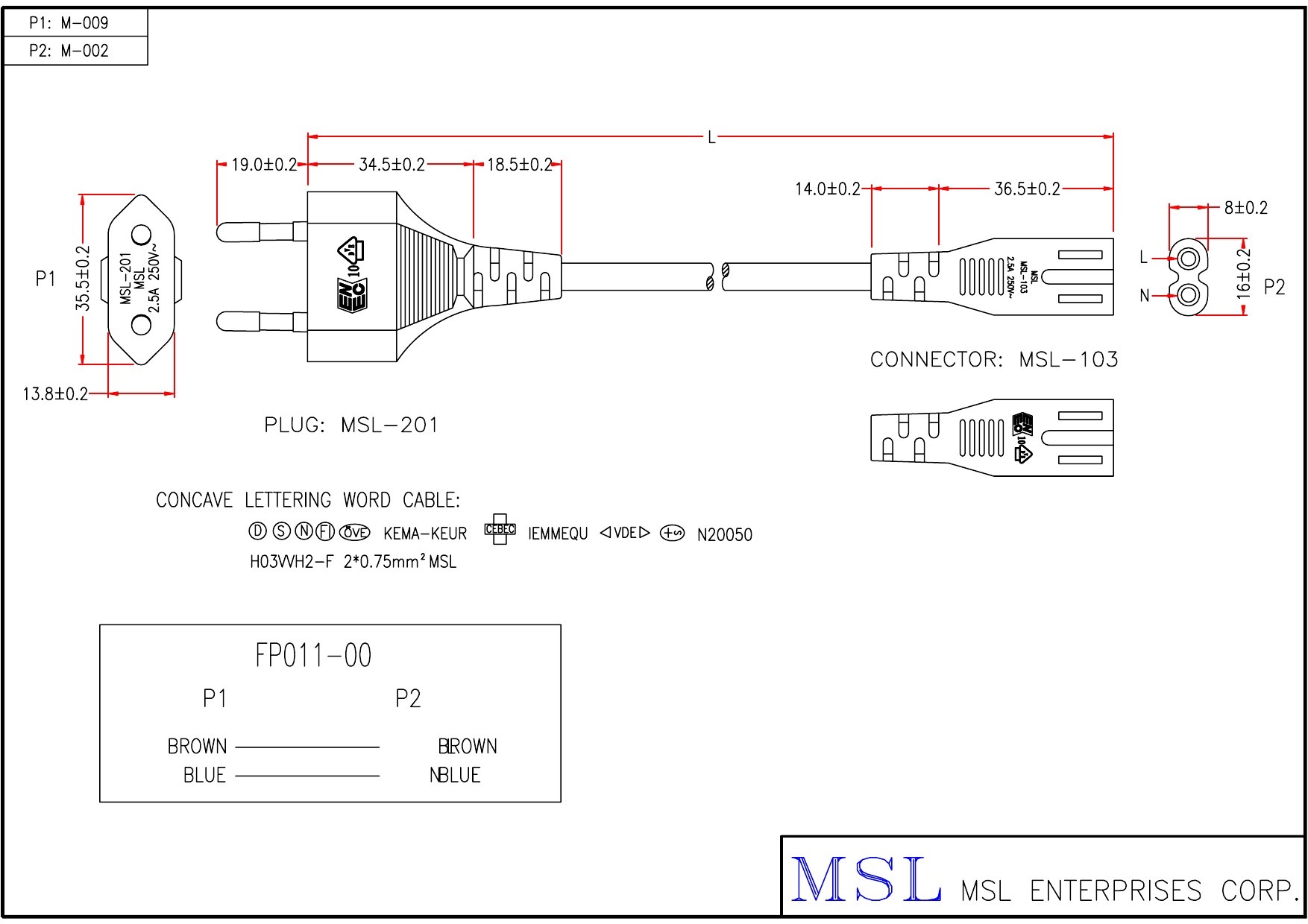 | Wire specification | H03VVH2-F 2C 0.75mm2 OD3.5*5.7 (EPH3V0107502C-001 ) |