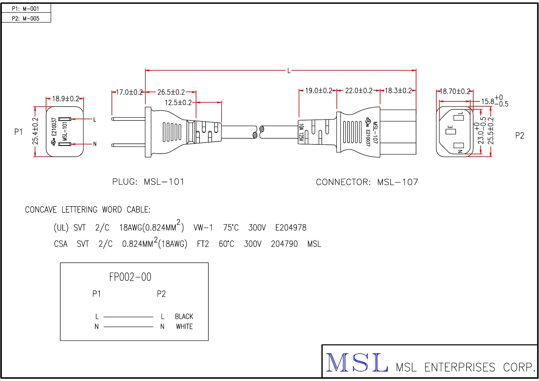 Wire specification UL SVT #18 2C OD6.3 (EPSVT011802C-054)
