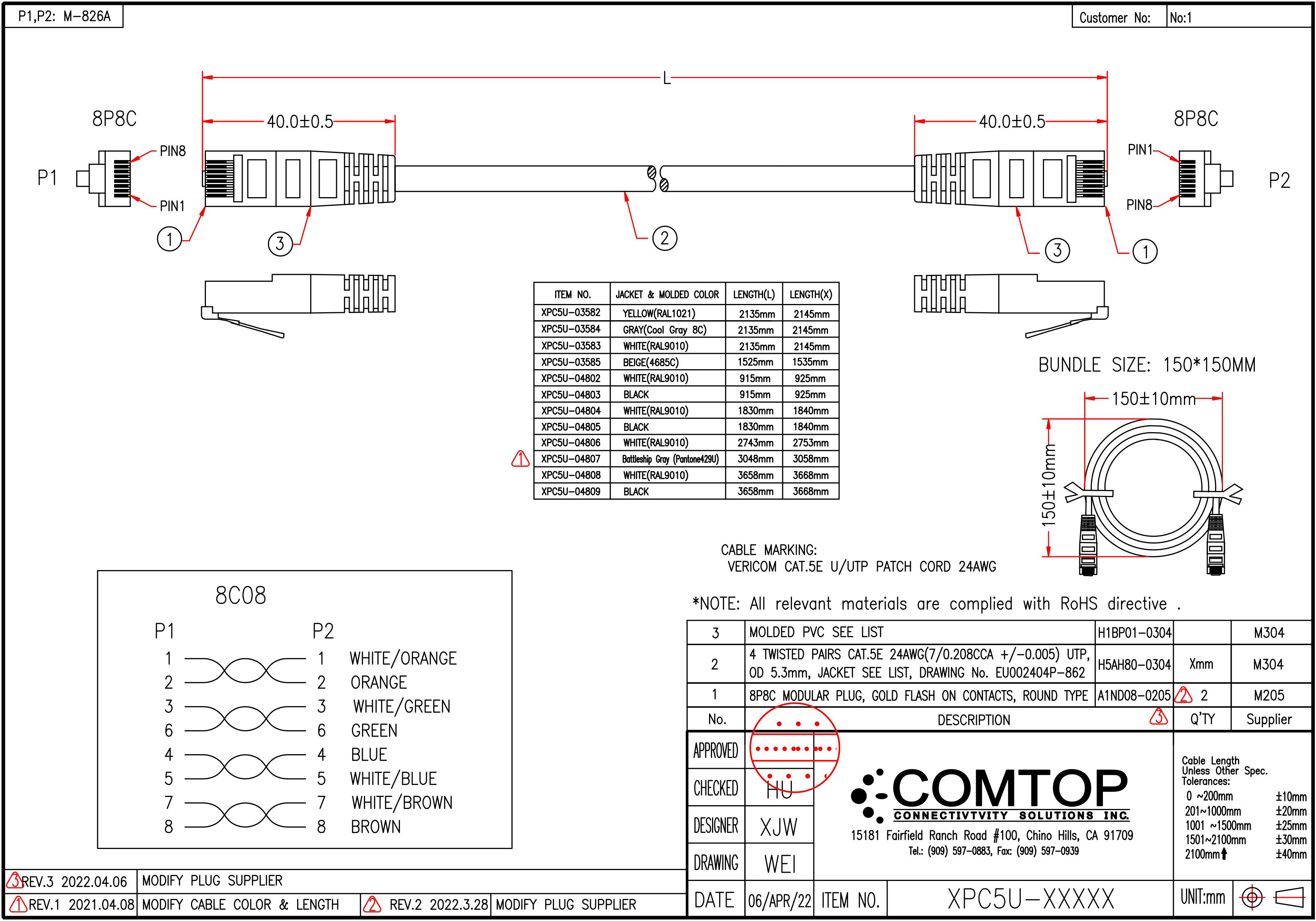 | Wire specification | UTP CAT.5E #24 4PR OD5.3(EU002404P-862) |