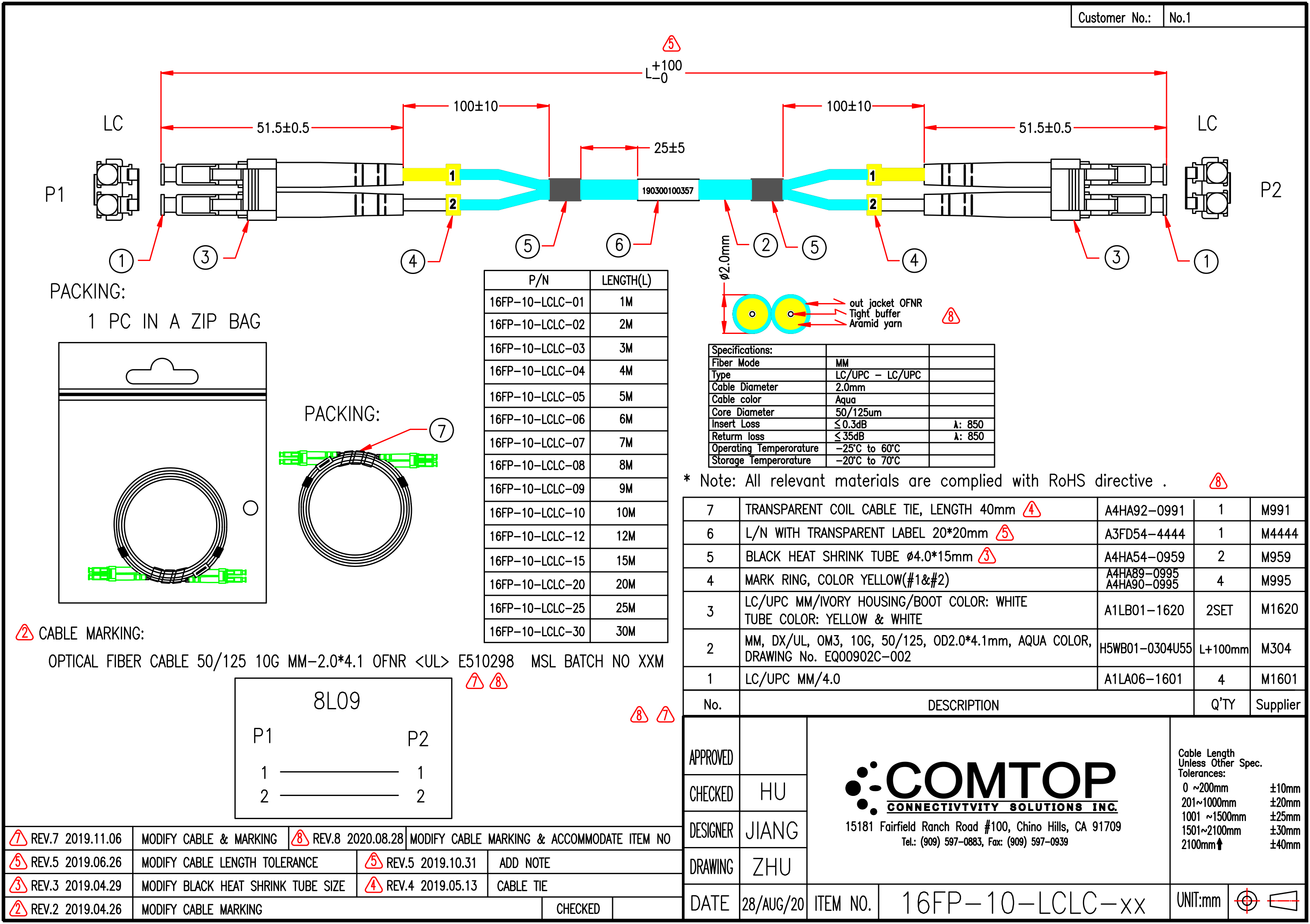 Wire specification Multi Mode Duplex OM3 10G 50/125 OD2.0*4.1mm OFNR