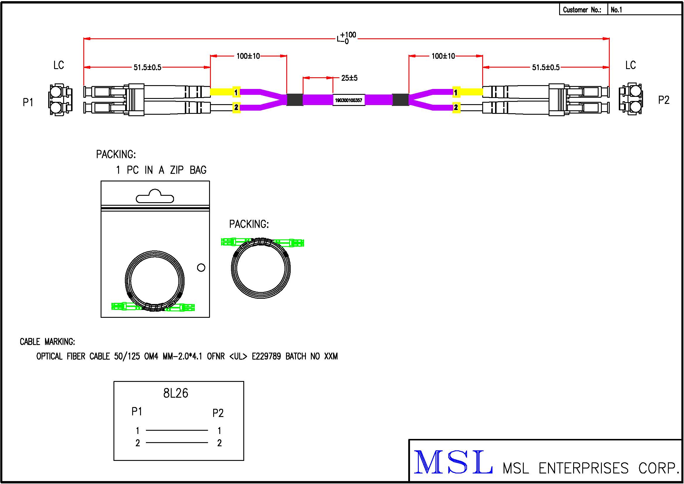 | Wire specification | Multi Mode Duplex OM4 50/125 OD2.0*4.1mm OFNR |