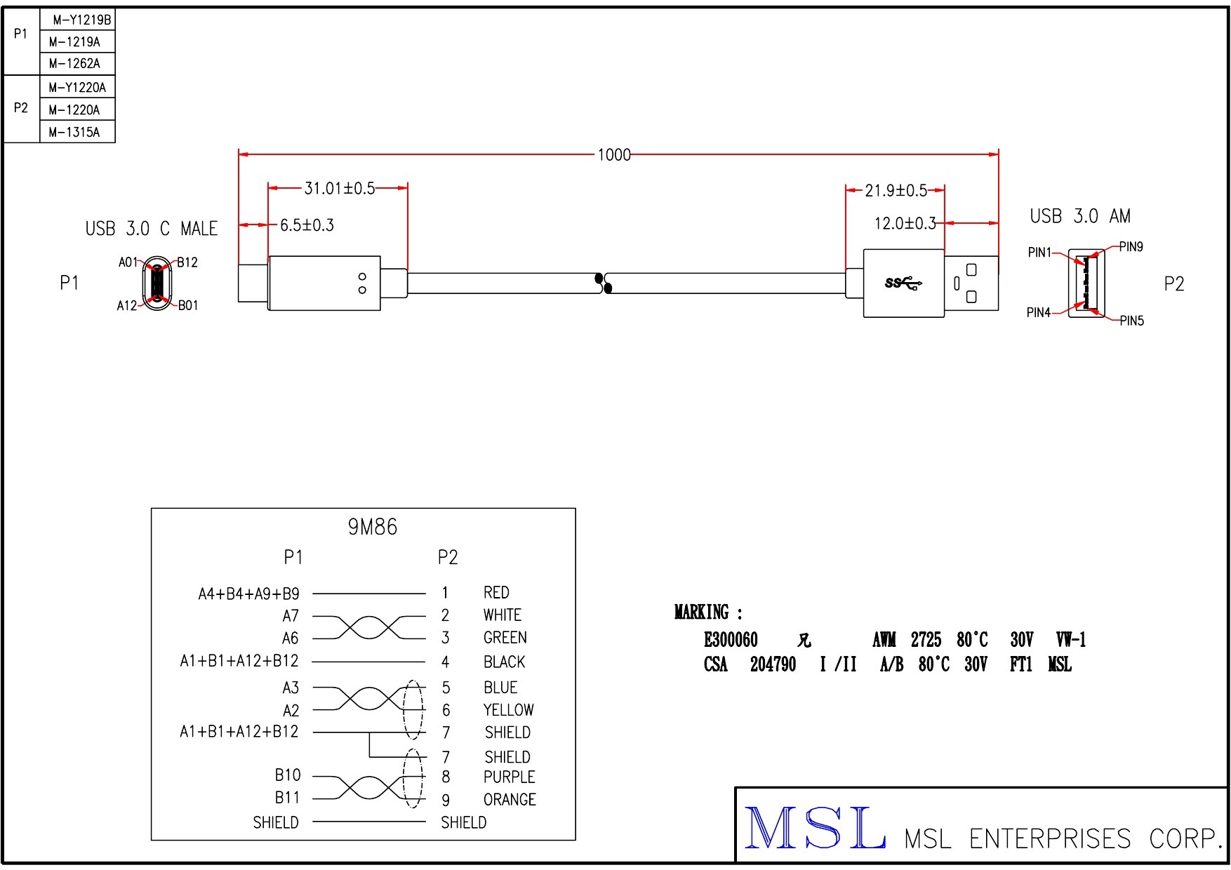 | Wire specification | USB3.0 #32+#32+#26 1P+2P+2C OD4.5 (EUAB3201P3202P2602C-666) |